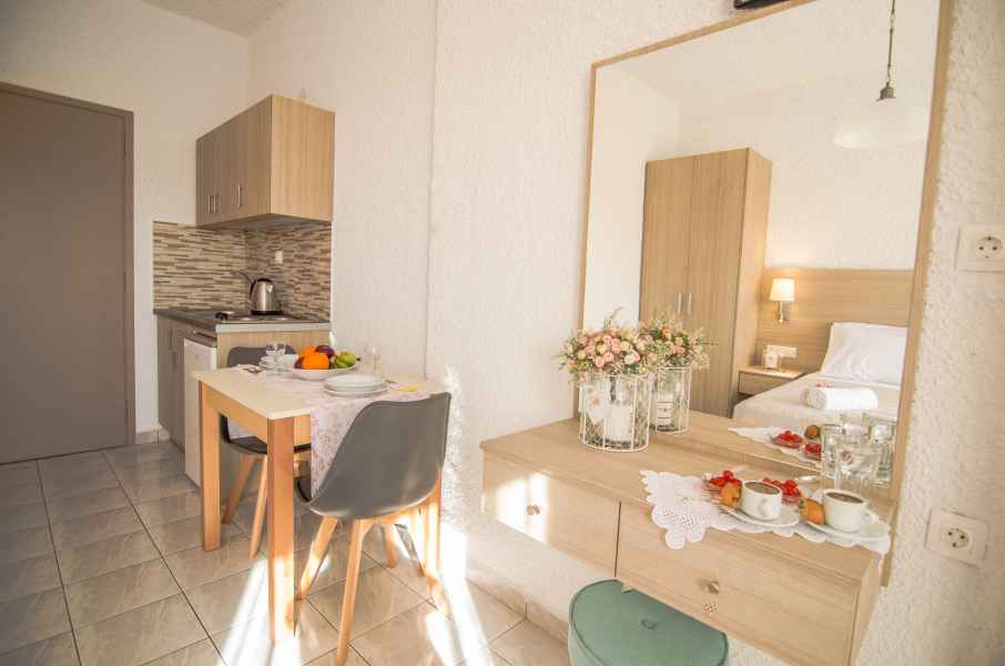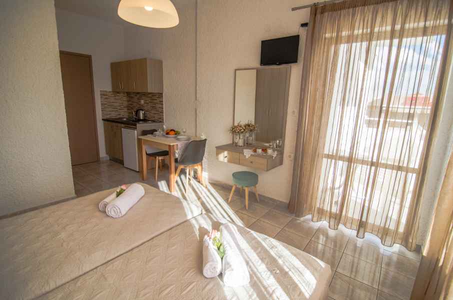 Υπάρχει η δυνατότητα προσθήκης επιπλέον κρεβατιού για τρίτο άτομο με άνεση χώρου