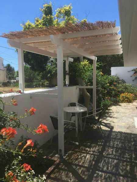 trois lits et dispose d'un lit double et d'un lit simple. Dans la cour il y a un kiosque pour vous protéger de l'exposition au soleil. - La deuxième chambre est double et a deux lits simples. Dans la cour il y a un parasol pour vous protéger de l'exposition au soleil.